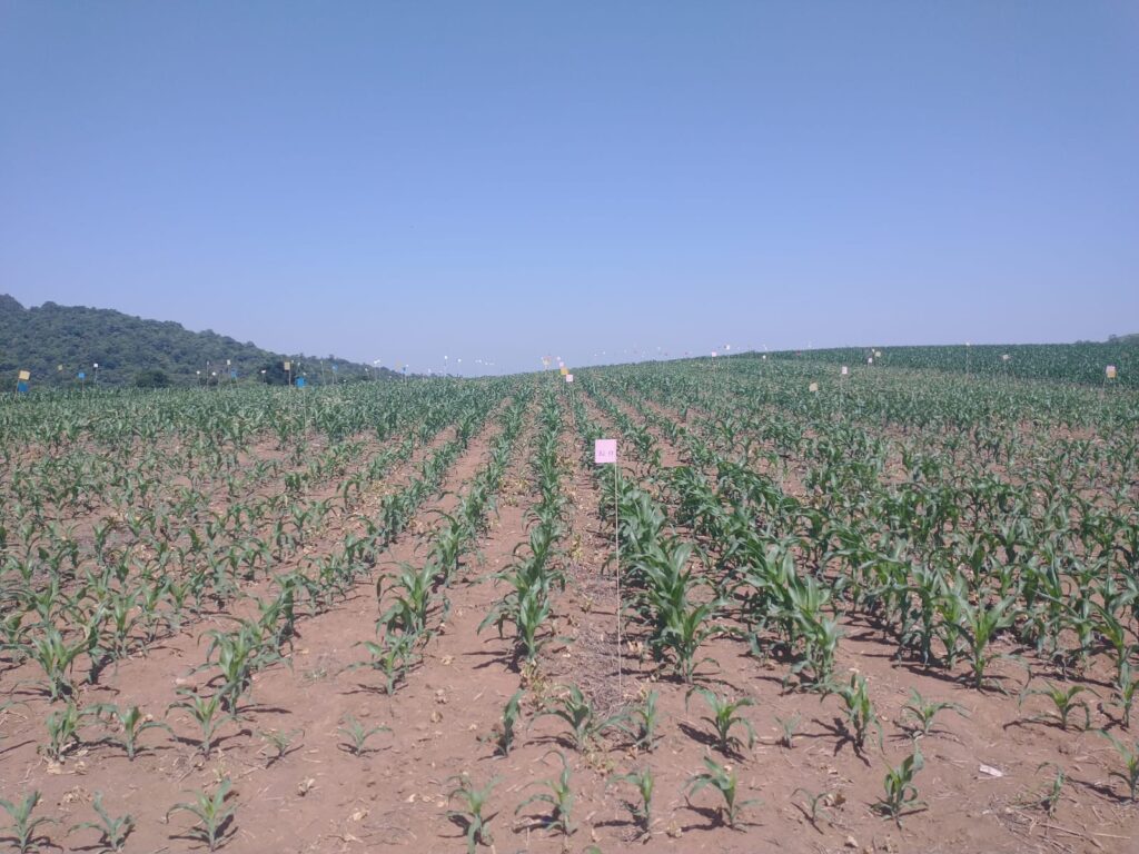 Milho no início do desenvolvimento após aplicação de biochar. Crédito: Leônidas Melo.